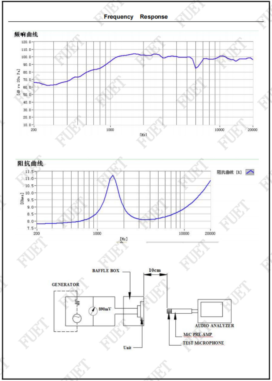 | 阻抗 | 8.0Ω±15% | At 3000Hz 1.0Vrms |
